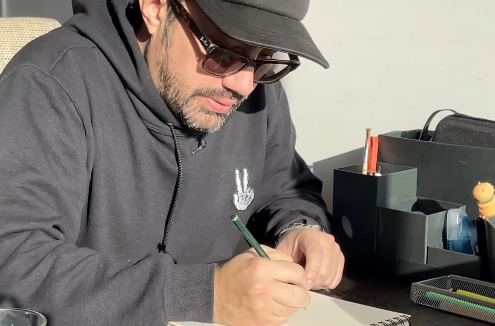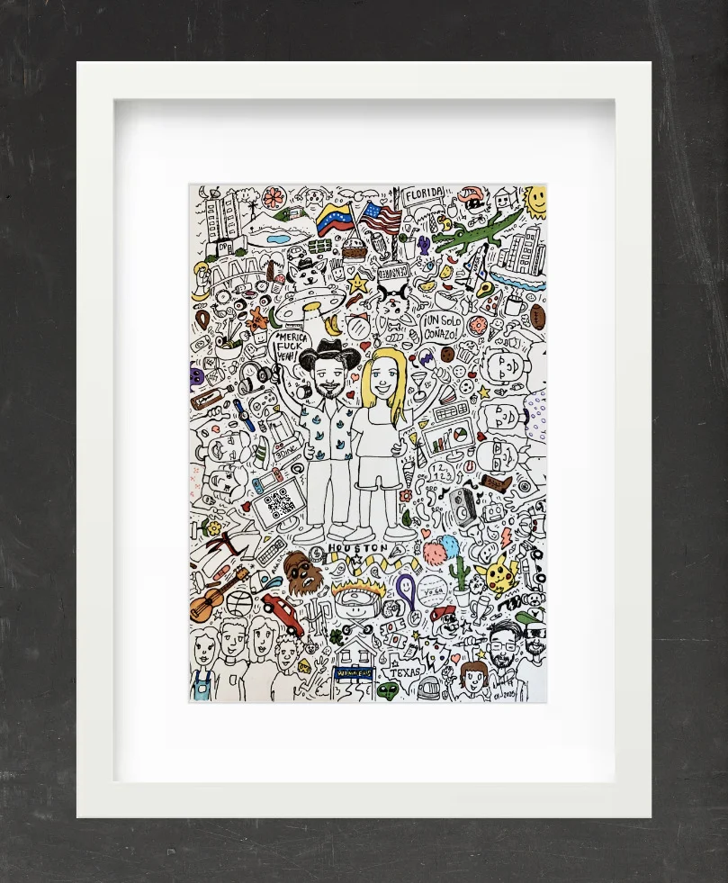 I work with simple lines on textured watercolor paper, highlighting certain elements with color to balance the composition and guide the viewer’s eye to what truly matters. I take inspiration from artists like Mr. Doodle, who seamlessly integrates elements into his illustrations, but I have developed my own approach—thinner lines that invite deeper observation and personal interpretation.